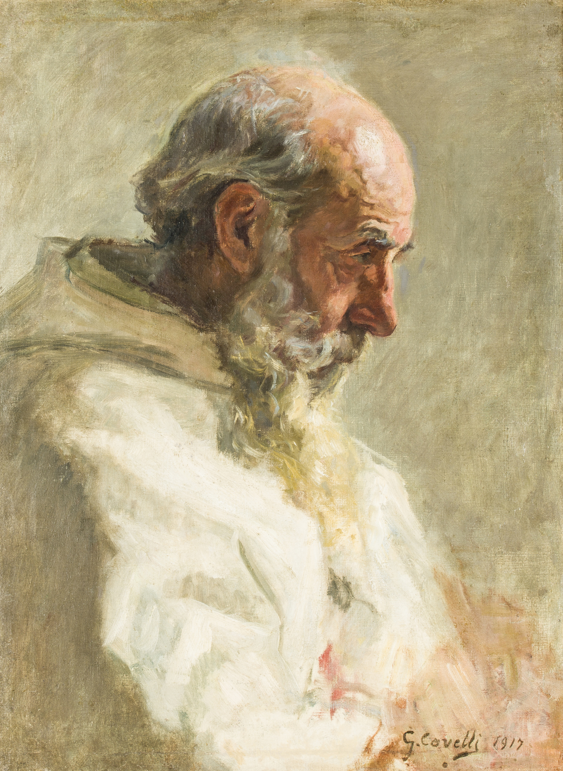 Il rapporto di Gaele Covelli con la sua terra natia fu sempre molto controverso: era profondamente legato ai luoghi dell’infanzia, alla sua famiglia e ai cari amici, ma allo stesso tempo nutriva un sentimento di insofferenza causato della generale indifferenza delle istituzioni e delle autorità pubbliche calabresi verso l’arte e gli artisti. Il pittore fu particolarmente deluso dagli episodi che riguardarono la destinazione dei dipinti Profilo di frate certosino (1917) ‒ che nel 1923 egli credeva essere già giunto a Catanzaro, in seguito all’acquisto da parte dello Stato alla I Mostra d’Arte Calabrese (1920) (AGNAM, pos. 3-8 Acquisti definiti, b. 7, f. 357 “Covelli – Profilo frate certosino”) ‒ e Ritratto di signorina inglese, per il quale egli auspicava una collocazione più prestigiosa di Palazzo De Nobili, come la Galleria Nazionale di Roma o Firenze (cfr. Ruga 2018; Passarelli 2013, pp. 26 – 27).